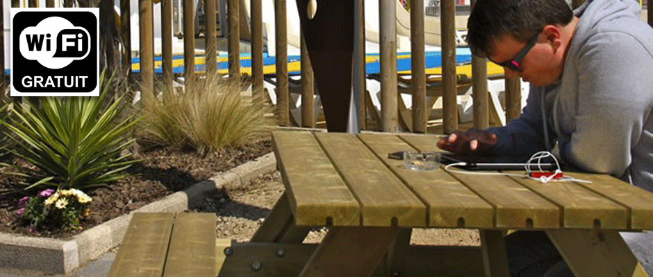 Dans une zone limitée (accueil, bar), vous pouvez connecter vos appareils (ordinateurs, baladeurs MP3, téléphones) à notre réseau WiFi. Restez connectés à vos proches pendant votre sortie au Parc de l’Aventure !